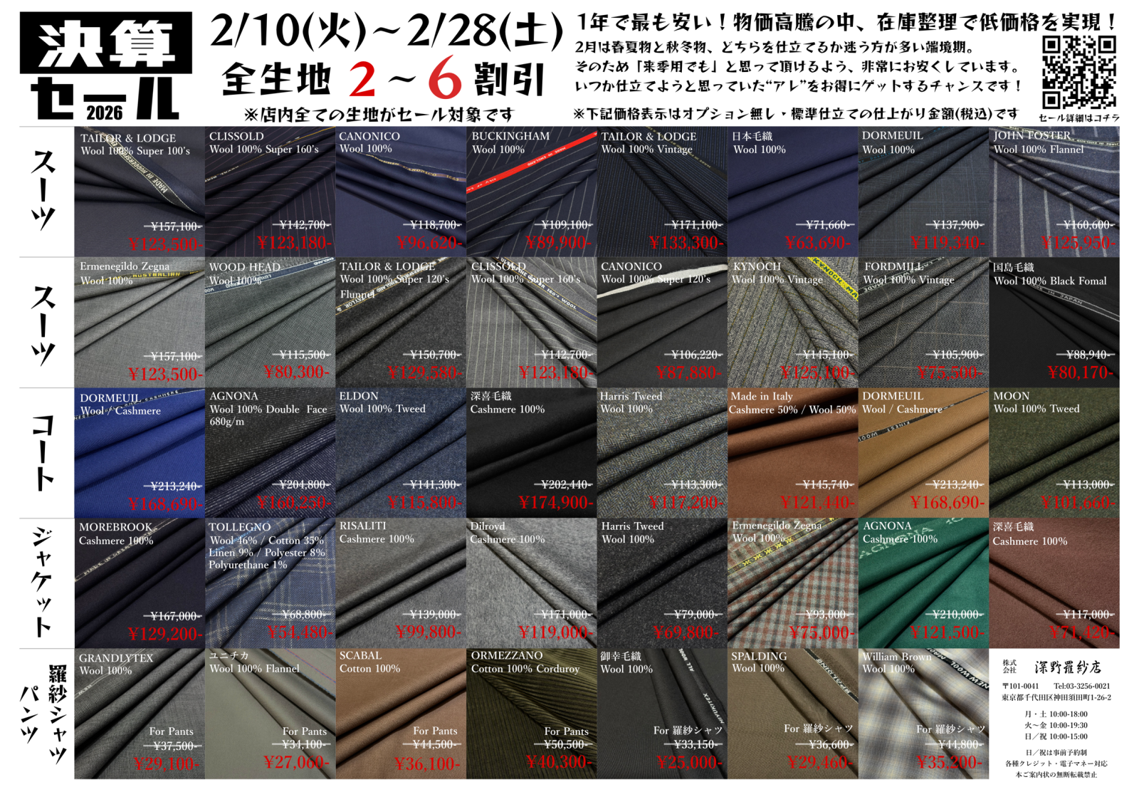 【一年間で最も安い!全服地2割引から6割引】